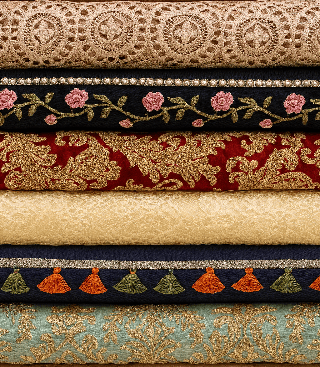 At SaiiLaceHouse, we specialize in sourcing and curating the most exquisite laces, intricate appliqués, and premium accessories that bring garments to life. Whether you are designing bridal wear, couture apparel, ethnic outfits, or contemporary fashion pieces, our products offer the perfect blend of elegance, durability, and craftsmanship. From delicate Chantilly lace to bold Guipure lace, our collection features a wide variety of patterns, textures, and designs to suit every creative requirement.